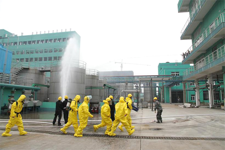 11月10日,在閏土生態(tài)工業(yè)園舉行了閏土生態(tài)工業(yè)園志愿消防隊事故應急處置演練暨園區(qū)志愿消防隊第五分隊成立儀式。隨著閏土生態(tài)工業(yè)園規(guī)模的不斷擴大,園區(qū)面臨的消防安全壓力也越來越大,為強化消防力量、鍛煉消防隊伍,經(jīng)股份公司批準,園區(qū)管委會保衛(wèi)部組織進行了一次園區(qū)志愿消防隊事故應急處置演練,同時舉行了園區(qū)志愿消防隊第五分隊(閏土染料公司)成立儀式。演練模擬包括員工在生產(chǎn)區(qū)域違章吸煙、亂扔煙頭而造成的車間內(nèi)易燃易爆物品引發(fā)的安全事故。