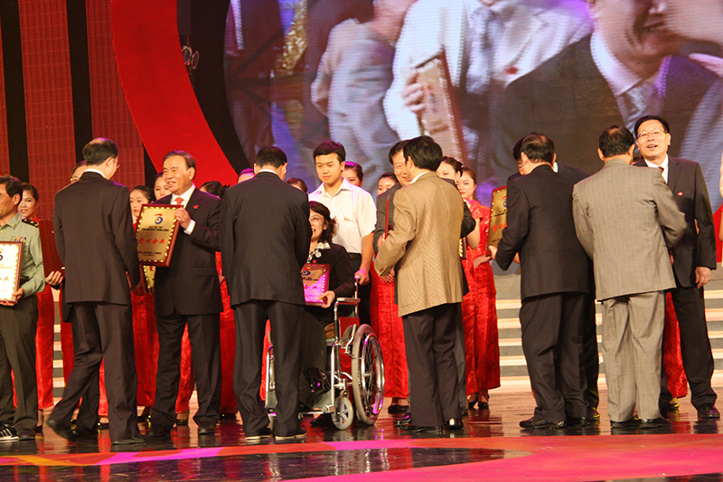 10月11日,阮加春總經(jīng)理在第八屆全國(guó)殘運(yùn)會(huì)倒計(jì)時(shí)一周年大型愛心助殘晚會(huì)上代表公司向運(yùn)動(dòng)會(huì)捐款100萬(wàn)元,并接受中國(guó)殘聯(lián)主席張海迪頒發(fā)“愛心企業(yè)”獎(jiǎng)牌