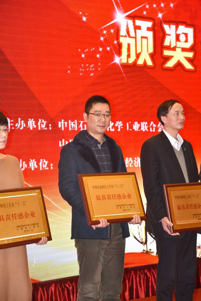 1月15日,美麗化工——風(fēng)云“十二五”精英評選頒獎儀式在河北滄州舉行。浙江閏土股份有限公司榮獲“最具責(zé)任感”企業(yè)稱號。股份公司副總經(jīng)理阮光棟上臺領(lǐng)獎。