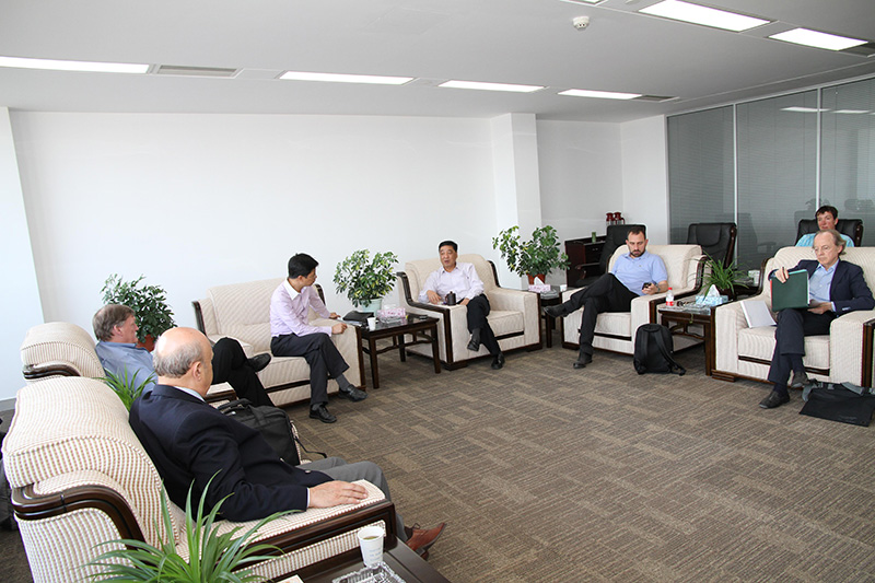 2、閏土股份展廳內(nèi),公司銷售員和全球客商進行商務(wù)洽談。