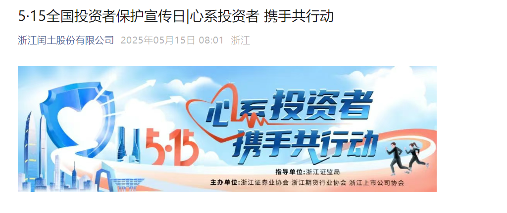 - 5·15全國投資者保護宣傳日|心系投資者 攜手共行動25-05-15